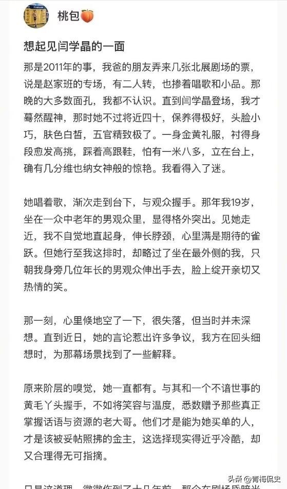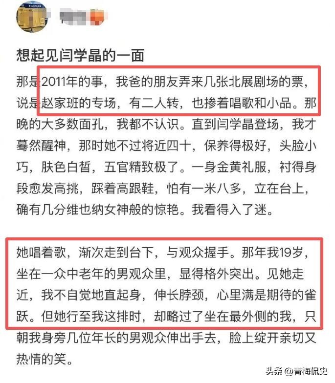 更令人没想到的是,在舆论持续发酵时,一位自称很多年前见过闫学晶的网友,发文曝光了她的真实人品。