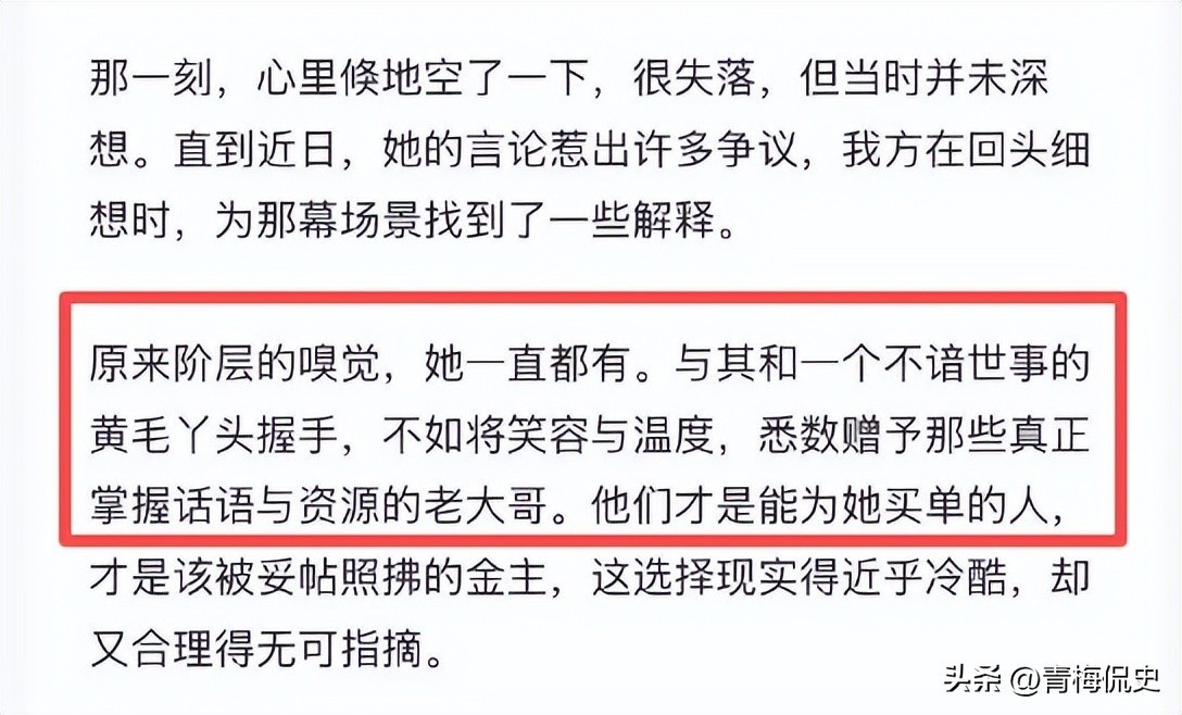 最后,这位网友也表示,或许“阶层的嗅觉”闫学晶一直都有。
