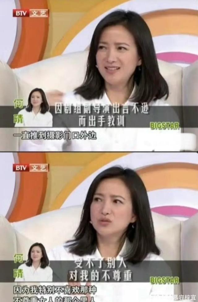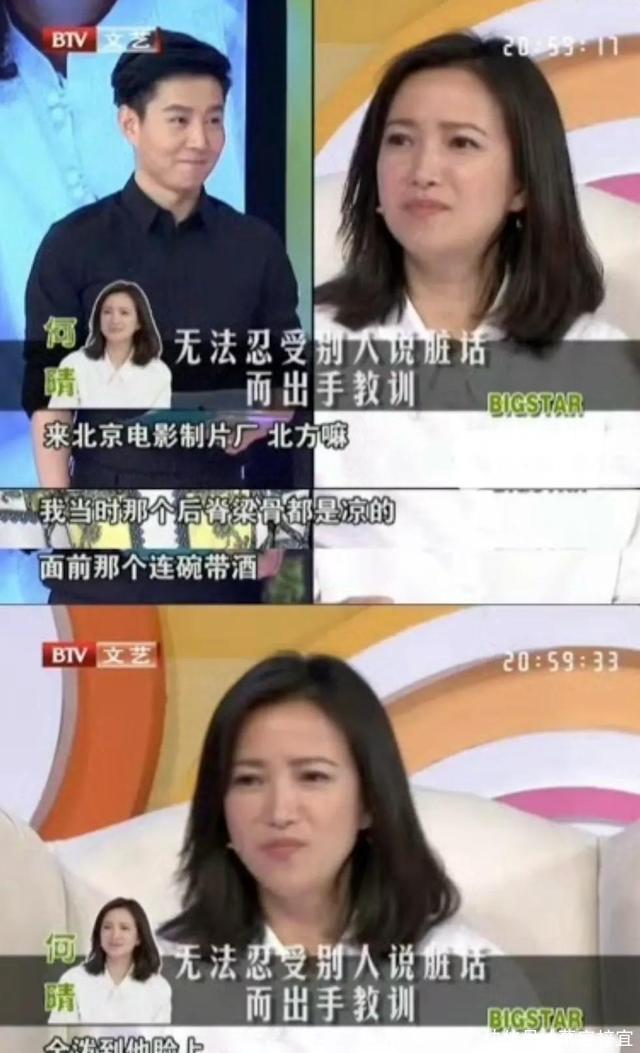 北方的冬天,非常冷,一碗酒泼出去,那是透心凉啊,同时凉了的还有何晴的主演机会。 后来在剧组拍戏,有一个副导演也是满脏话,出言不逊,何晴上去就拽着他,把对方推出了门。