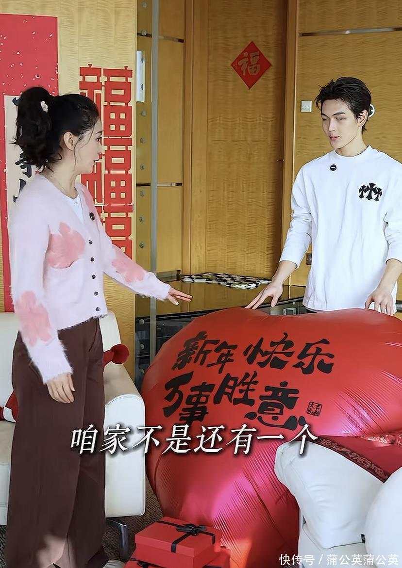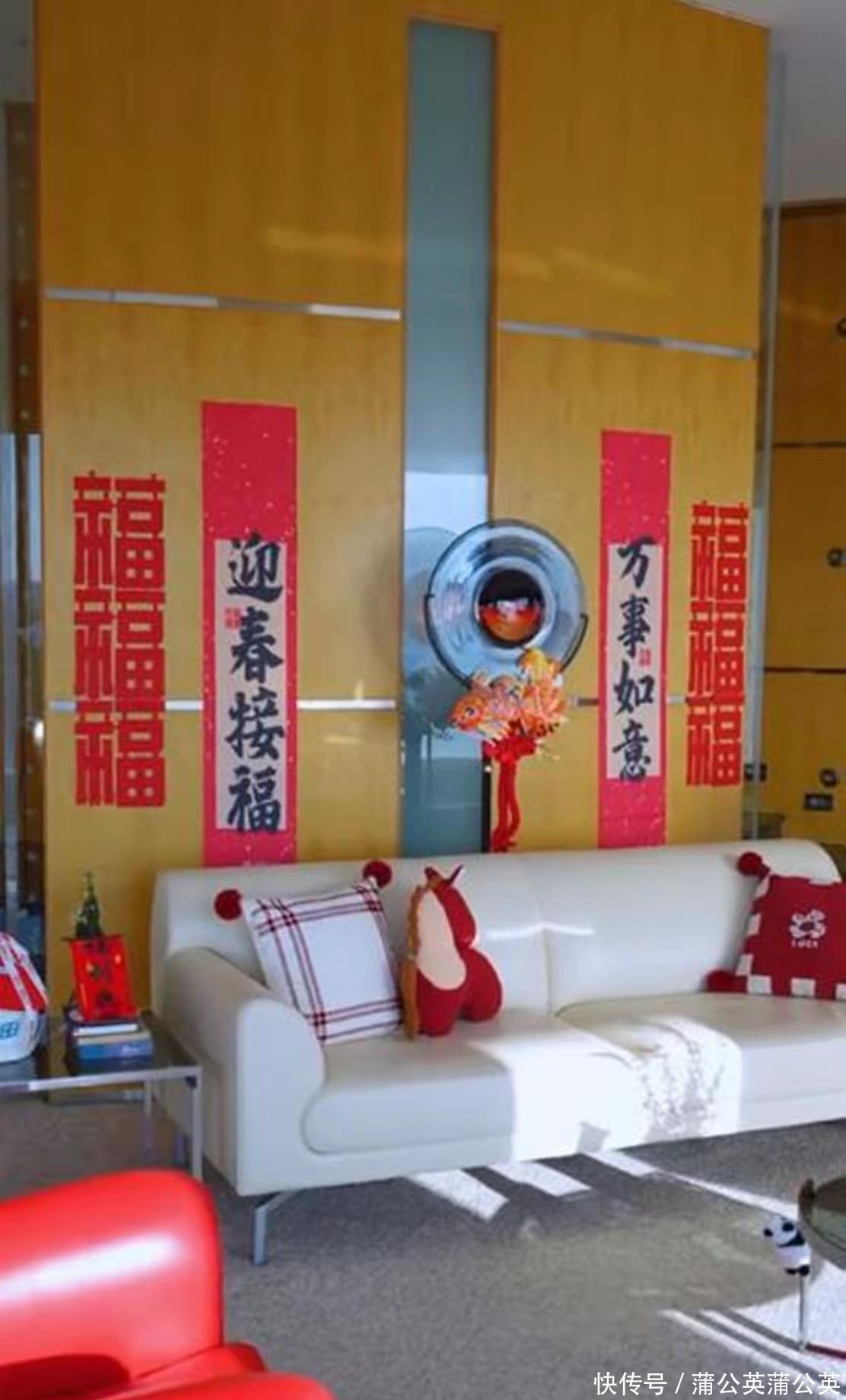 母子俩装饰的大别墅,看的心里暖暖的。除了红色的条幅、还有喜字,甚至连沙发上的摆件都换成了红色,新年的氛围感一下子就出来了。