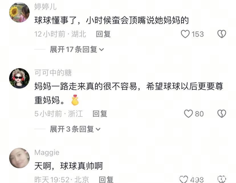 也有不少网友感叹,现在球球长大了、懂事了。小时候会顶嘴说她妈妈,现在成了妈妈的皮夹克,懂得保护妈妈了。王艳一路走来也不容易,之前婆婆还在的时候,外界都说她是“洗脚婢”。